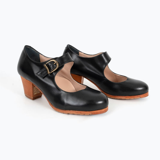 Professional Flamenco Dance Shoes "La Lupi" classic in black leather and “carrete” heel.