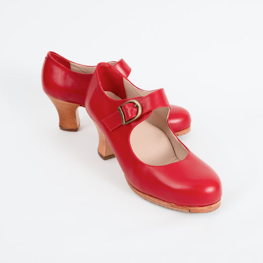 Professional Flamenco Dance Shoes "La Lupi" model in Red leather and “carrete” heel.